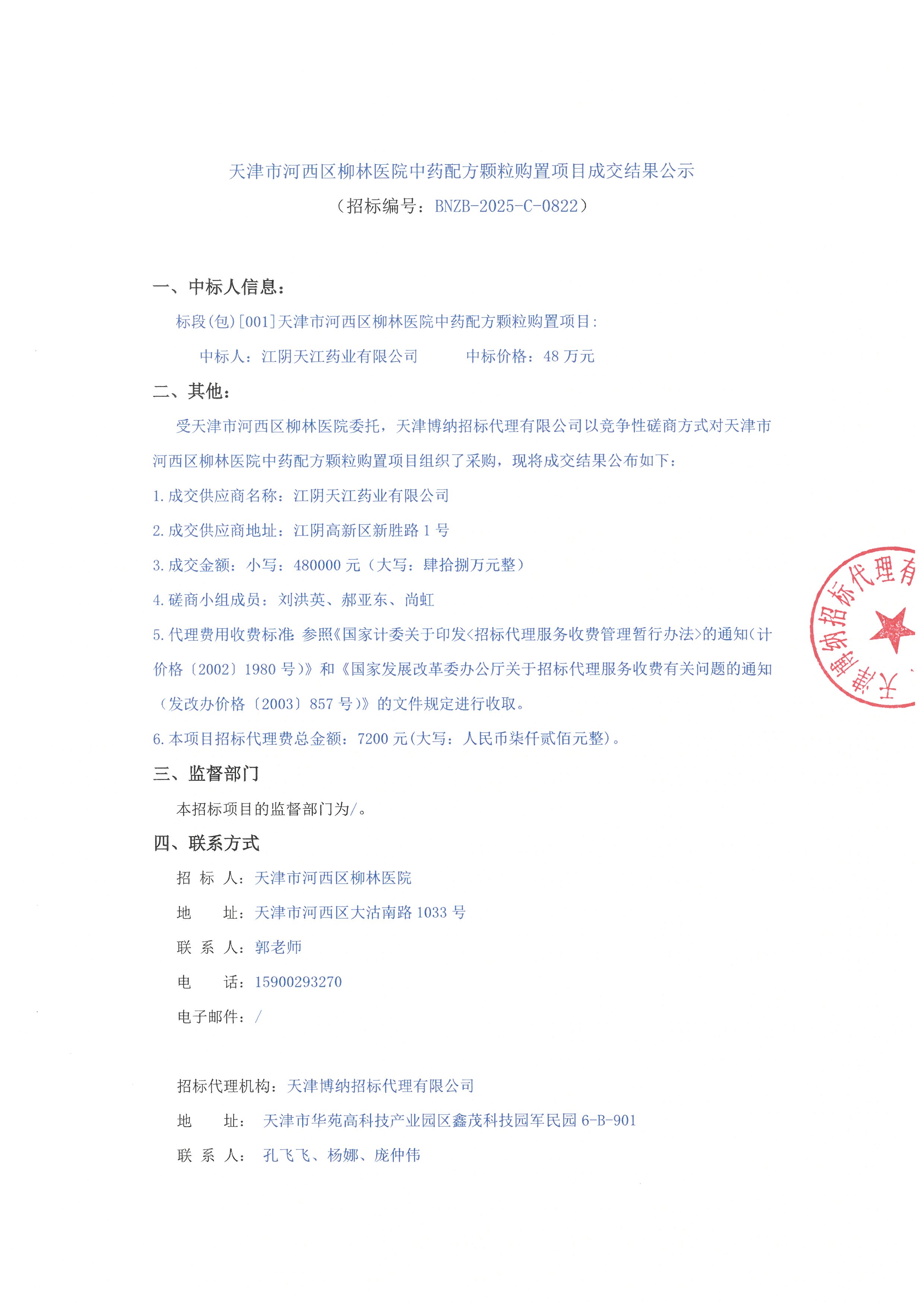 天津市河西區(qū)柳林醫(yī)院中藥配方顆粒購置項(xiàng)目